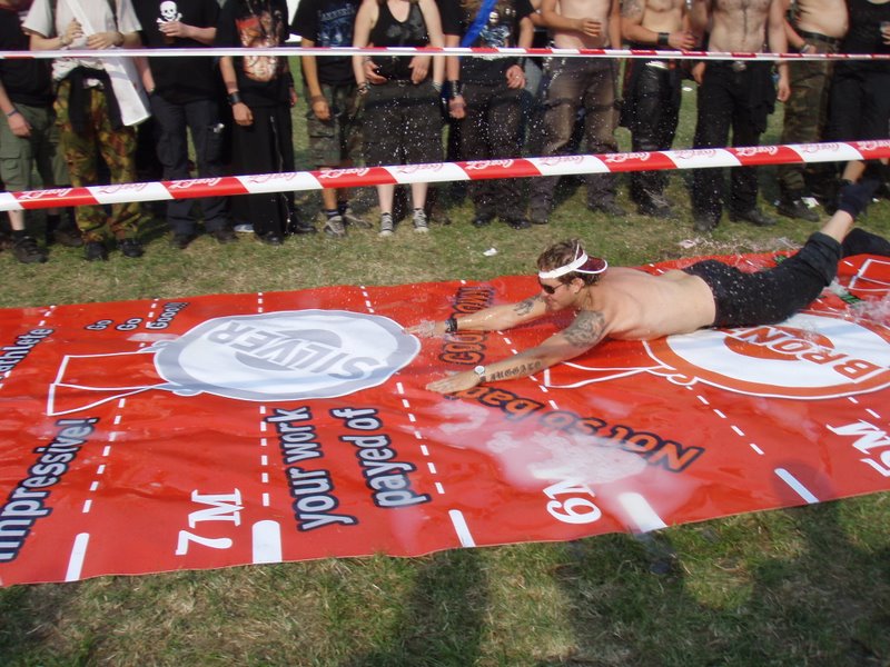 Watersports Published Thu July 3, 2008 at 800 × 600 in Graspop 2008 – Day 1 Courtesy of Coke at the Graspop festival – a water slide! Share this:TweetShare on Tumblr Email a link to a friend (Opens in new window) Email Print (Opens in new window) Print