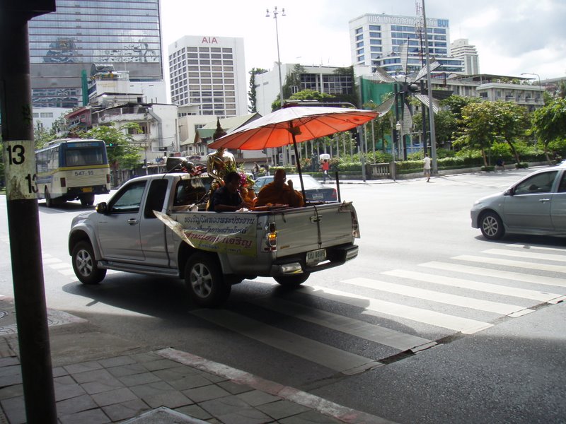 Monk in a truck Published Tue August 5, 2008 at 800 × 600 in Bye-bye Leah! With a megaphone and a big umbrella. As you do. YOu do see some weird things in Bangkok. Share this:TweetShare on Tumblr Email a link to a friend (Opens in new window) Email Print (Opens in new window) Print