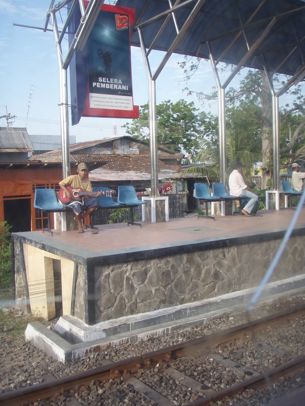 At the railway station. Pluckin’ the strings Published Wed September 17, 2008 at 600 × 800 in A long-haul trek (to Indonesia, country number 38) A random guy on a train platform somewhere between Surabaya and Banyuwangi. Share this:TweetShare on Tumblr Email a link to a friend (Opens in new window) Email Print (Opens in new window) Print