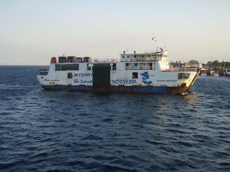 Indonesian ferry Published Wed September 17, 2008 at 800 × 600 in A long-haul trek (to Indonesia, country number 38) These get a bad rap for some reason. All boats sink eventually, right? This is one of the ones plying the short hop from Bali to Java. Share this:TweetShare on Tumblr Email a link to a friend (Opens in new window) Email Print (Opens in new window) Print